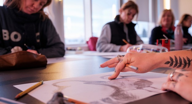 Lögð er áhersla á teikningu, grafíkþrykk, formfræði, fjarvíddarteikningu og mynsturgerð. Unnið er með fjölbreytt efni og lögð áhersla á sjálfstæð vinnubrögð, frumkvæði og skapandi nálgun nemenda.