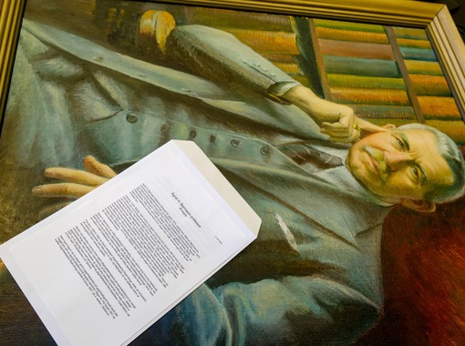 Afhentu HÍ málverk af fyrrverandi rektor skólans