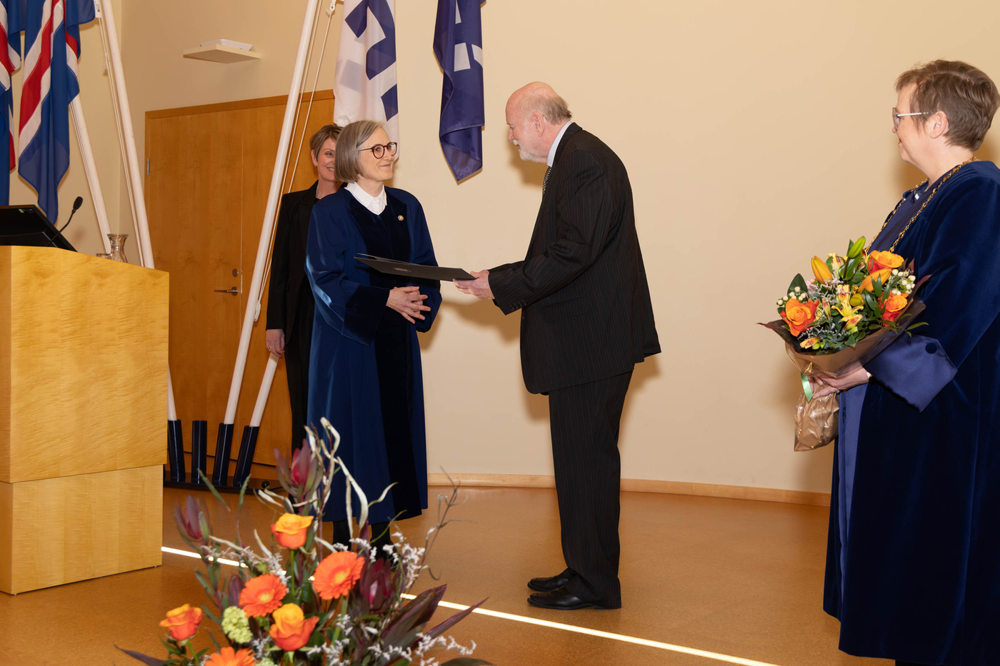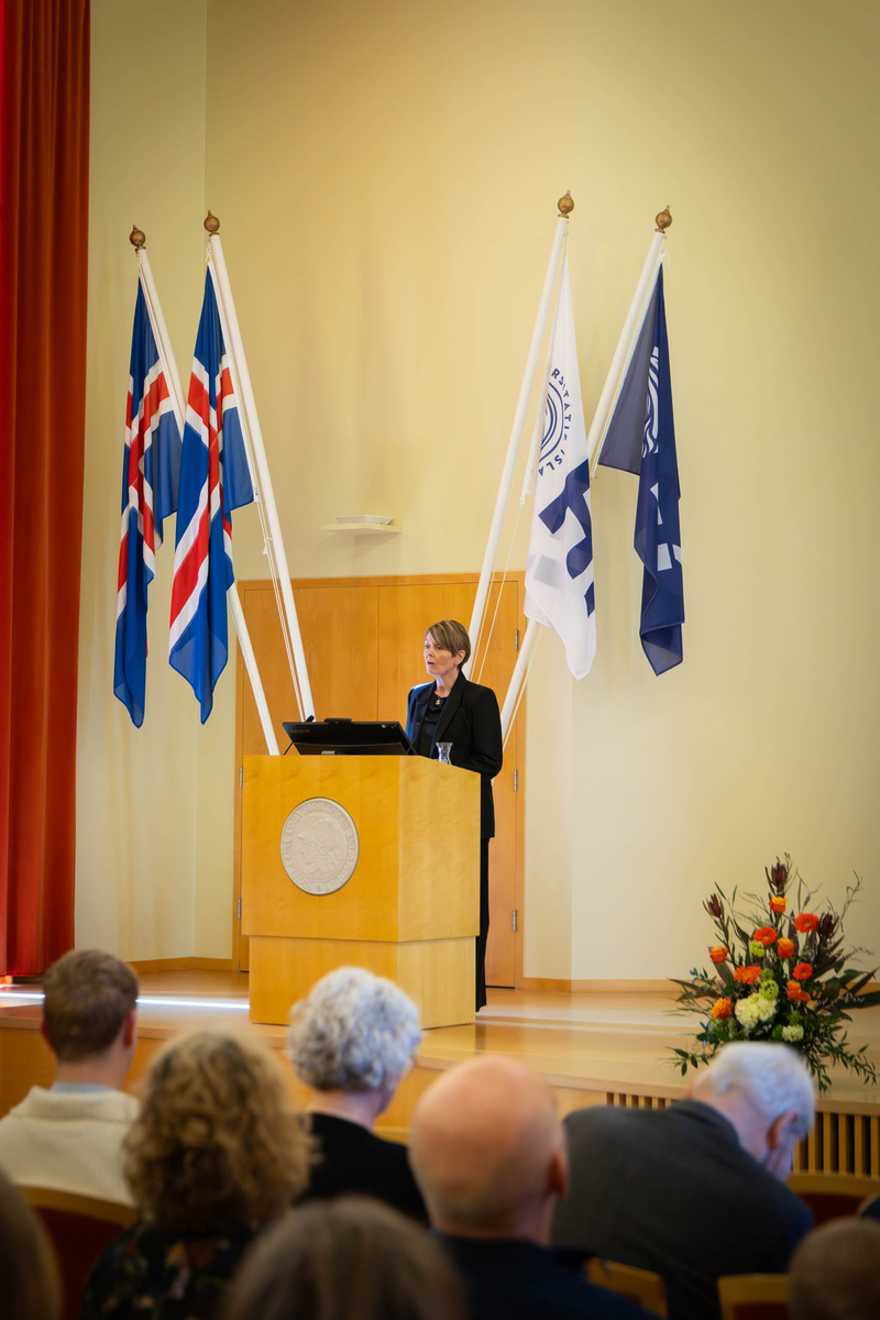 Ávörp við athöfnina flutti Ágúst sjálfur, Silja Bára R. Ómarsdóttir, rektor HÍ, og Ásta Dís en Margrét Sigrún Sigurðardóttir, forseti Viðskiptafræðideildar, stýrði athöfninni.