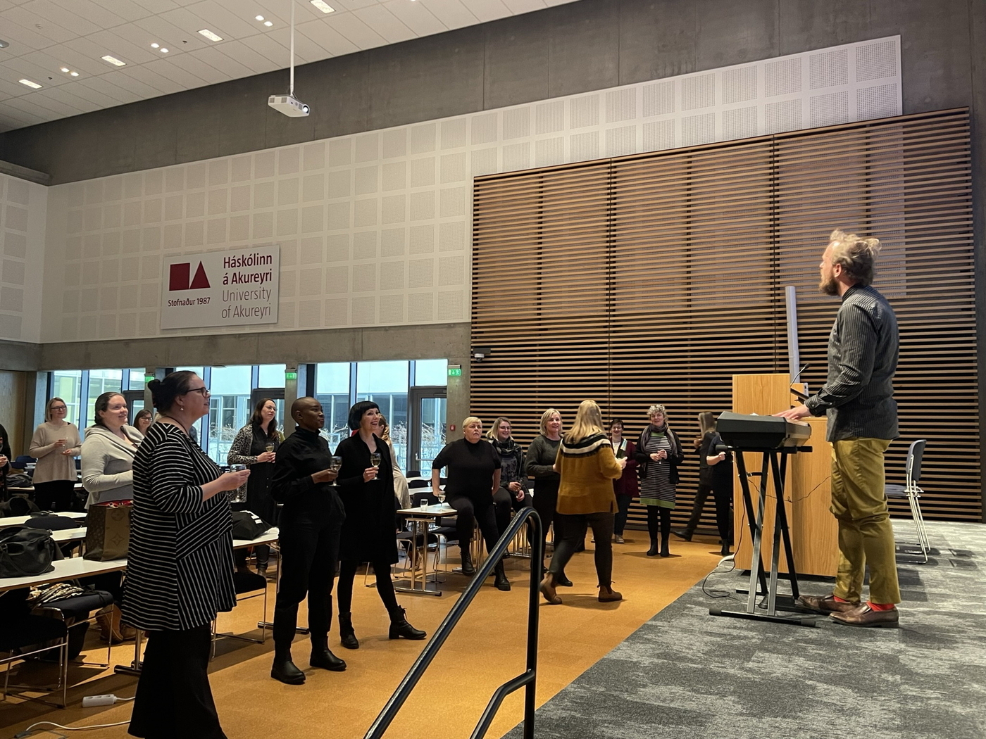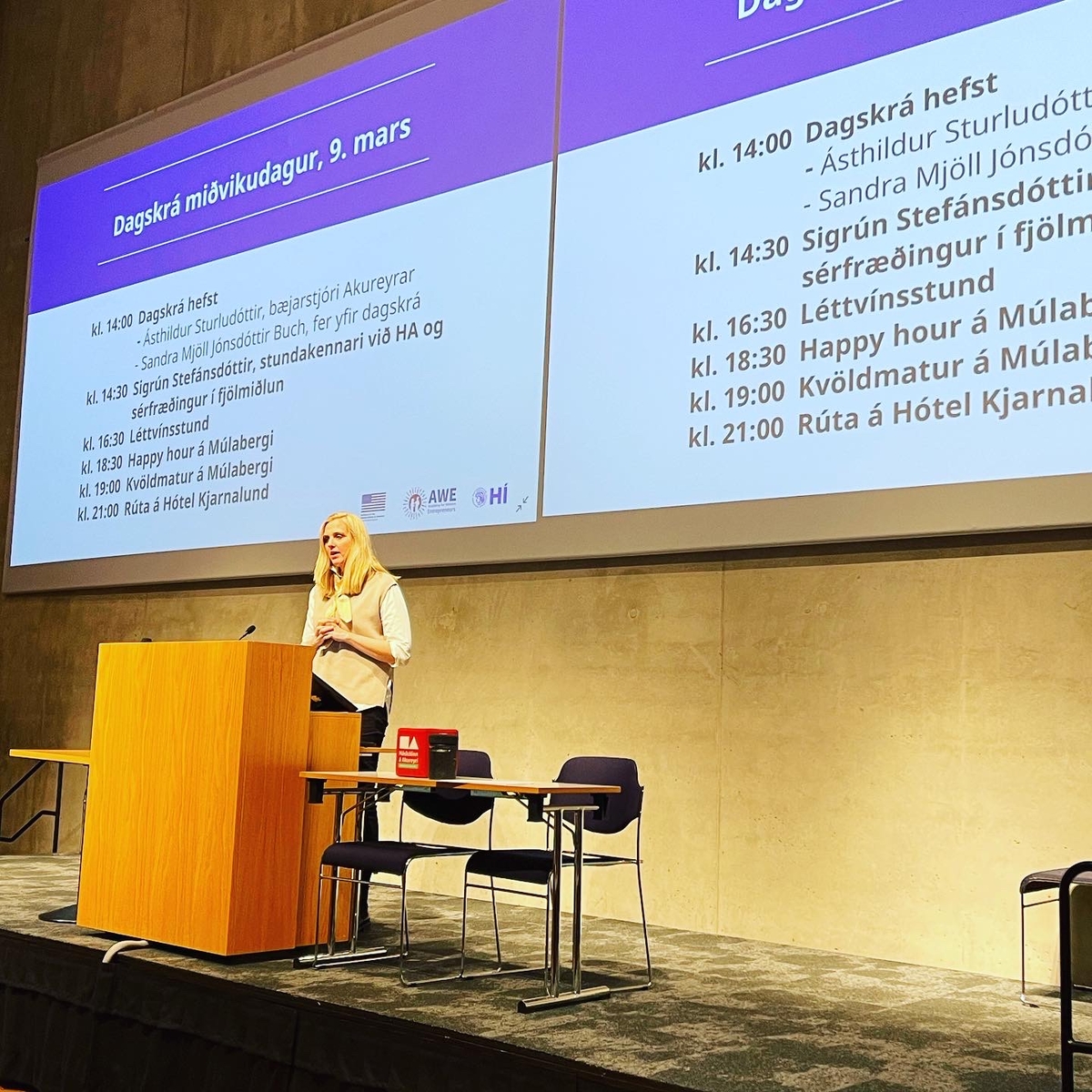 Þó er boðið upp á nokkrar staðlotur og um 30 frumkvöðlar víðs vegar af landinu tóku þátt í lotu sem fór fram á Akureyri á dögunum. Staðlotan var haldin í Háskólanum á Akureyri þar sem Ásthildur Sturludóttir, bæjarstjóri á Akureyri, tók á móti hópnum. Einnig fór dr. Sigrún Stefánsdóttir, sérfræðingur í fjölmiðlun, yfir kynningu viðskiptahugmynda og framkomu og þá skemmti Vilhjálmur B. Bragason vandræðaskáld konunum í lok fyrri dags.