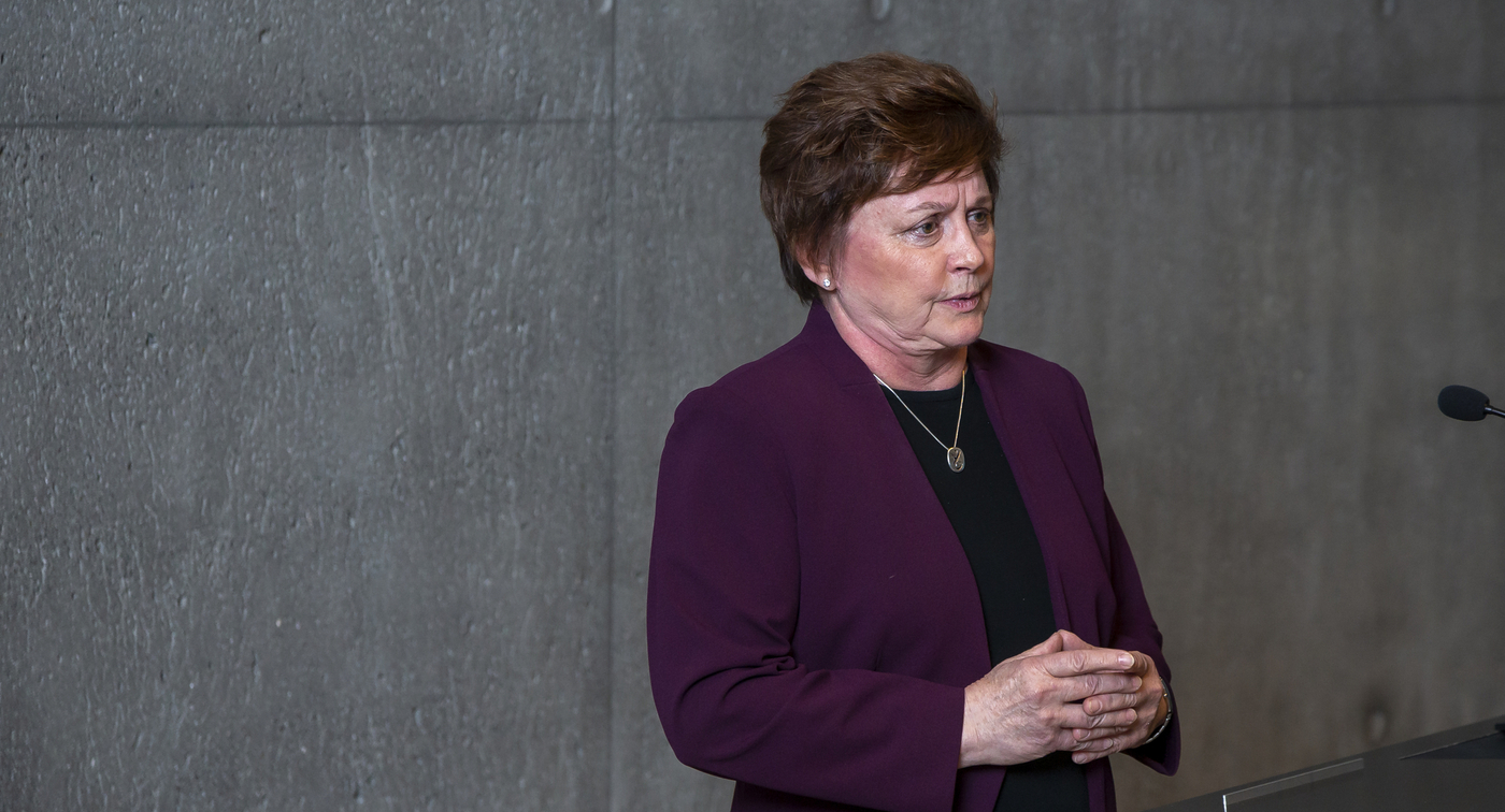Connie Delaney ásamt Ástu Steinunni Thoroddsen, prófessor emeritu við Hjúkrunar- og ljósmóðurfræðideild og forstöðumanni Rannsókna- og þróunarseturs um ICNP (International Classification for Nursing Practice), við formlega stofnun setursins árið 2020. Setrið heyrir undir Heilbrigðisvísindastofnun HÍ. MYND/Kristinn Ingvarsson
