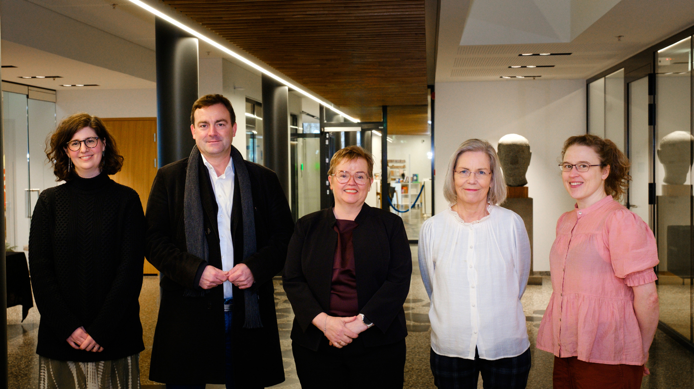 Stjórn hins nýja Gervigreindarseturs HÍ. Frá vinstri: Lotta María Ellingsen, prófessor í rafmangs- og tölvunvarfræði, Sigrún Helga Lund, prófessor í tölfræði, Stefanía Benónísdóttir, rannsóknalektor og faglegur leiðtogi setursins, Hafsteinn Einarsson, dósent í tölvunarfræði, og Hrefna Dögg Gunnarsdóttir, lektor í lögfræði.