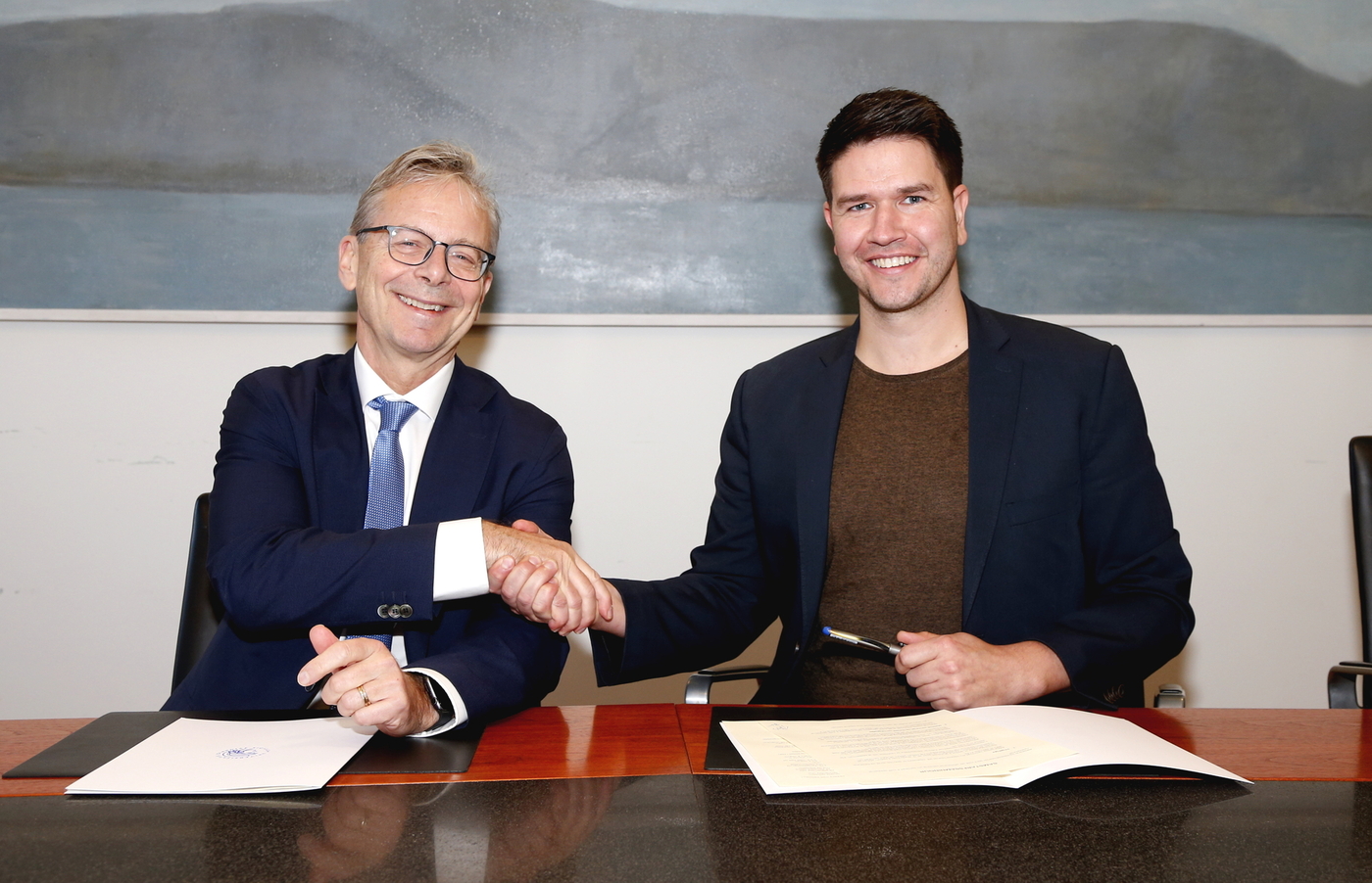 Ætlunin er að virkja nemendur, starfsfólk og sprotafyrirtæki Háskóla Íslands enn frekar í að leysa áskoranir í rekstri hins opinbera með nýsköpun samkvæmt nýjum samstarfssamningi sem Jón Atli Benediktsson, rektor Háskóla Íslands, og Björgvin Víkingsson, forstjóri Ríkiskaupa, undirrituðu í Háskóla Íslands nýverið.