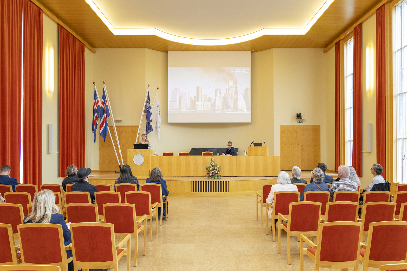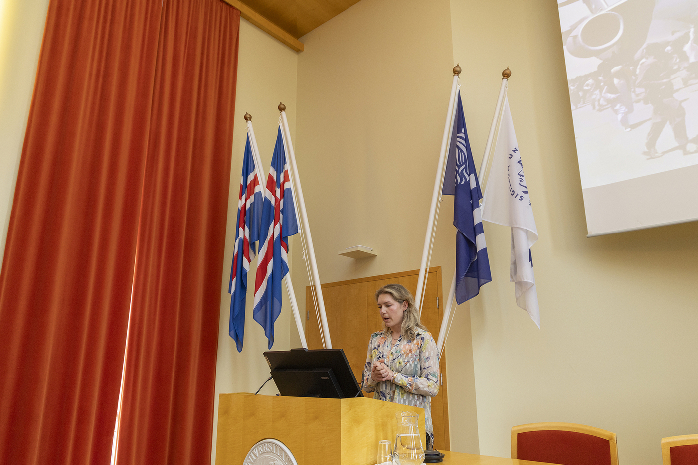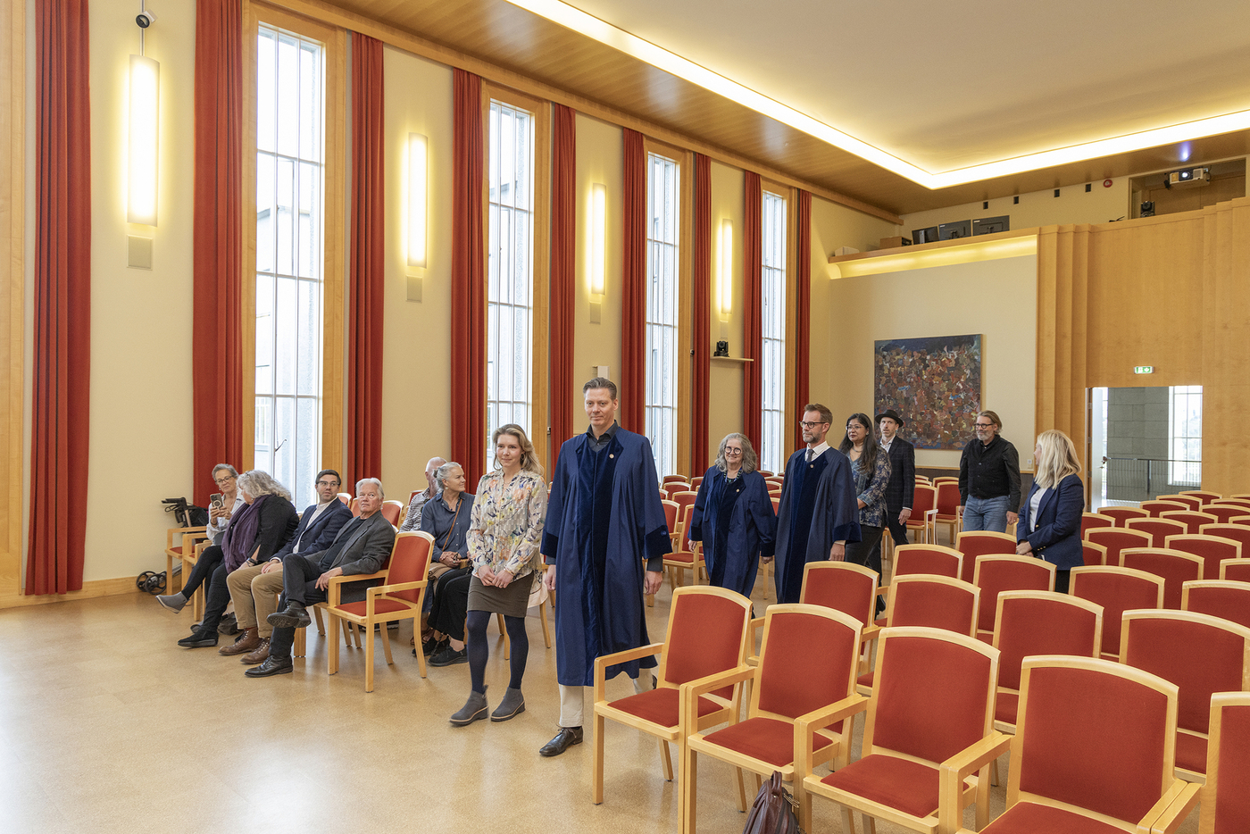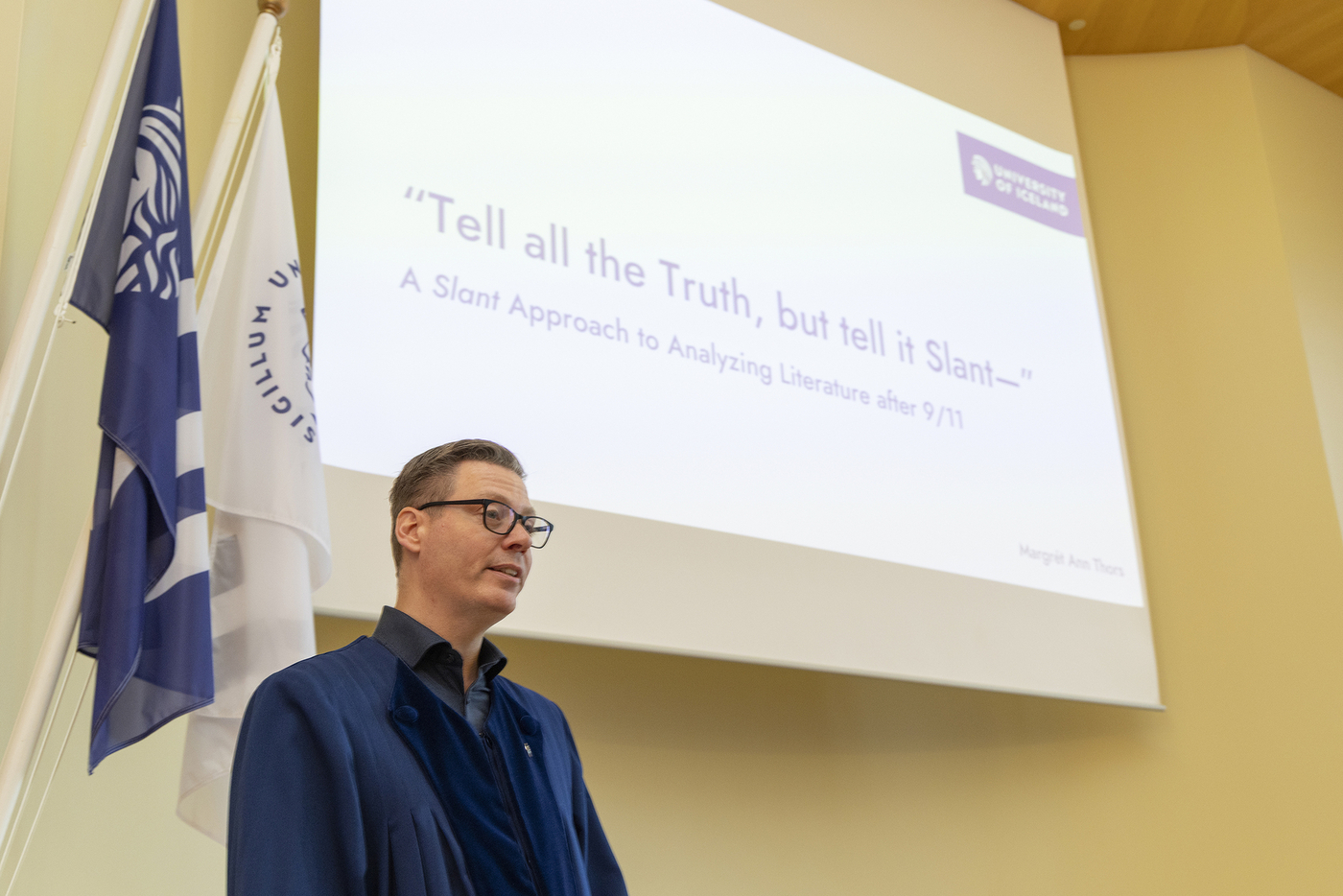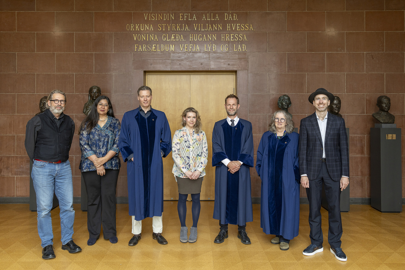 Andmælendur við vörnina voru Marie Bouchet, dósent við háskólann í Toulouse í Frakklandi og Thomas Ærvold Bjerre, dósent við Syddansk Universitet í Danmörku. Gísli Magnússon, forseti Mála- og menningardeildar, stjórnaði athöfninni sem fór fram í Hátíðasl í Aðalbyggingu Háskóla Íslands, föstudaginn 12. september.