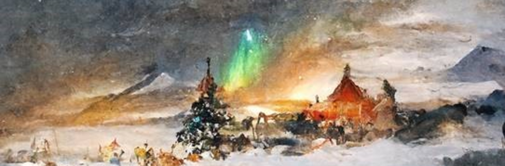 „Líkanið sem ég nota, sem er þjálfað á texta og myndum, byggir á andstæðuþjálfun. Þ.e.a.s. reynt er að nota tauganet til að greypa texta og mynd í sama rúmi þ.a. greyping texta sem lýsir mynd sé áþekk greypingu myndarinnar. En greyping texta sem passar ekki við myndina, og er þá andstæða hennar, á ekki að vera áþekk greypingu myndarinnar í rúminu,“ segir Hafsteinn. Hér er ein af jólamyndum Hafsteins sem unnin er með aðferðum gervigreindar.