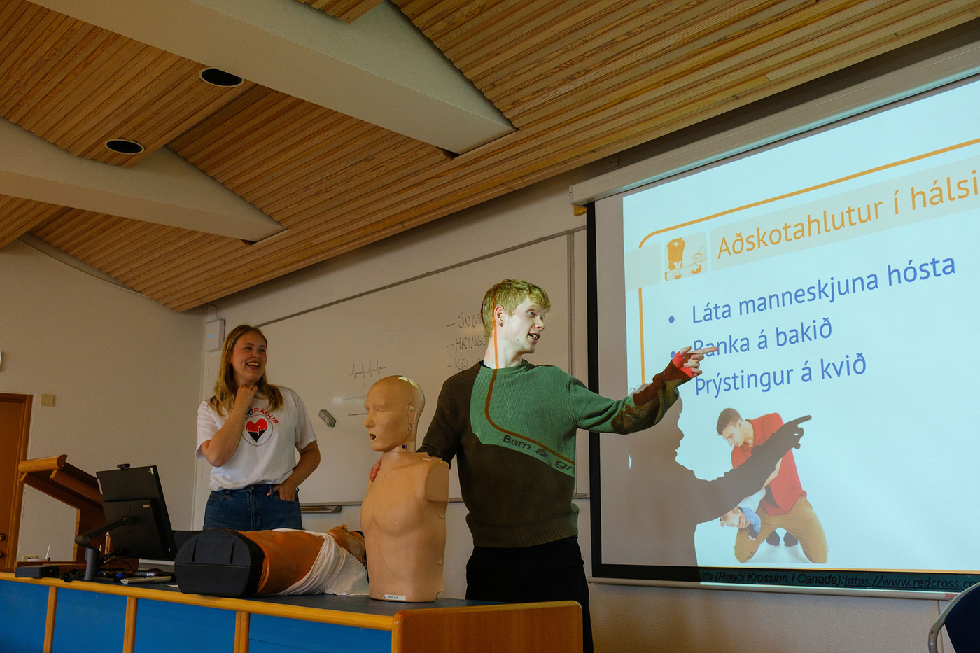 Boðið var upp á 6 þverfaglegar stöðvar. Nemendur fengu að fara á hverja stöð fyrir sig og prófuðu að sauma saman sár á hermihúð, blönduðu lyf, mældu blóðþrýsting og súrefnismettun, kepptu í að gera hjartahnoð (app sem skynjar hver hnoðar skilvirkast), fengu sýnikennslu um notkun stoðtækja og kepptust í að týna upp smáhluti með tækjun notuðuðm í kviðarhols speglunaraðgerðum. Þátttakendur voru mjög áhugasamir og til fyrirmyndar í alla staði.