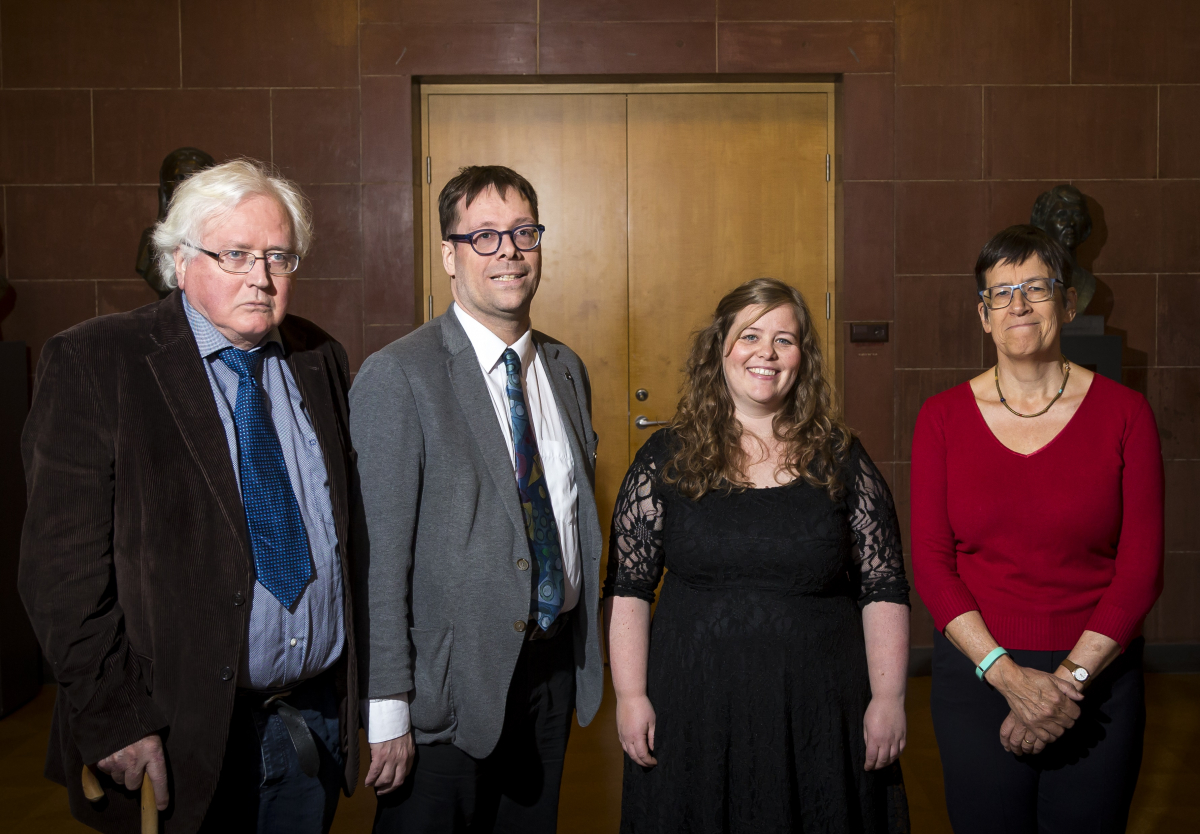 Sverrir Tómasson, prófessor emeritus, Ármann Jakobsson prófessor, Þórdís Edda og Alison Finlay prófessor.