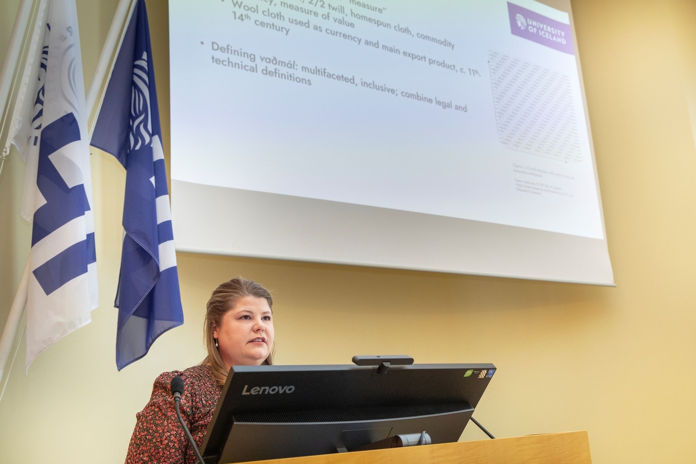Vaðmál var aðalgjaldmiðill og verslunarvara á miðöldum á Íslandi, auk þess sem það var fjölnota vefnaðarvara til klæðagerðar og annarra nota. Í ritgerð sinni fjallar Meghan Anne Korten um hvernig efnislegir eiginleikar og gæði vaðmáls mótuðu hlutverk þess sem gjaldmiðils og útflutningsvöru. Enn fremur verður kannað hvernig vaðmál miðlaði stöðu og sjálfsmynd í samfélaginu. Rannsóknin byggir á heimildum frá 12.–14. öld, þar á meðal Íslendingasögum, samtíðarsögum, Grágás, Jónsbók, máldögum og annálum. Leitast er við að greina fimm helstu nýtingarform vaðmáls: sem efnislega, fagurfræðilega, í viðskiptum, við tengslamyndun og sem félagslegt aðgreiningartæki. Niðurstöðurnar sýna að framleiðsla, notkun og viðskipti voru órjúfanlega tengd og endurspegla félagslega, efnahagslega og menningarlega vídd vaðmáls.