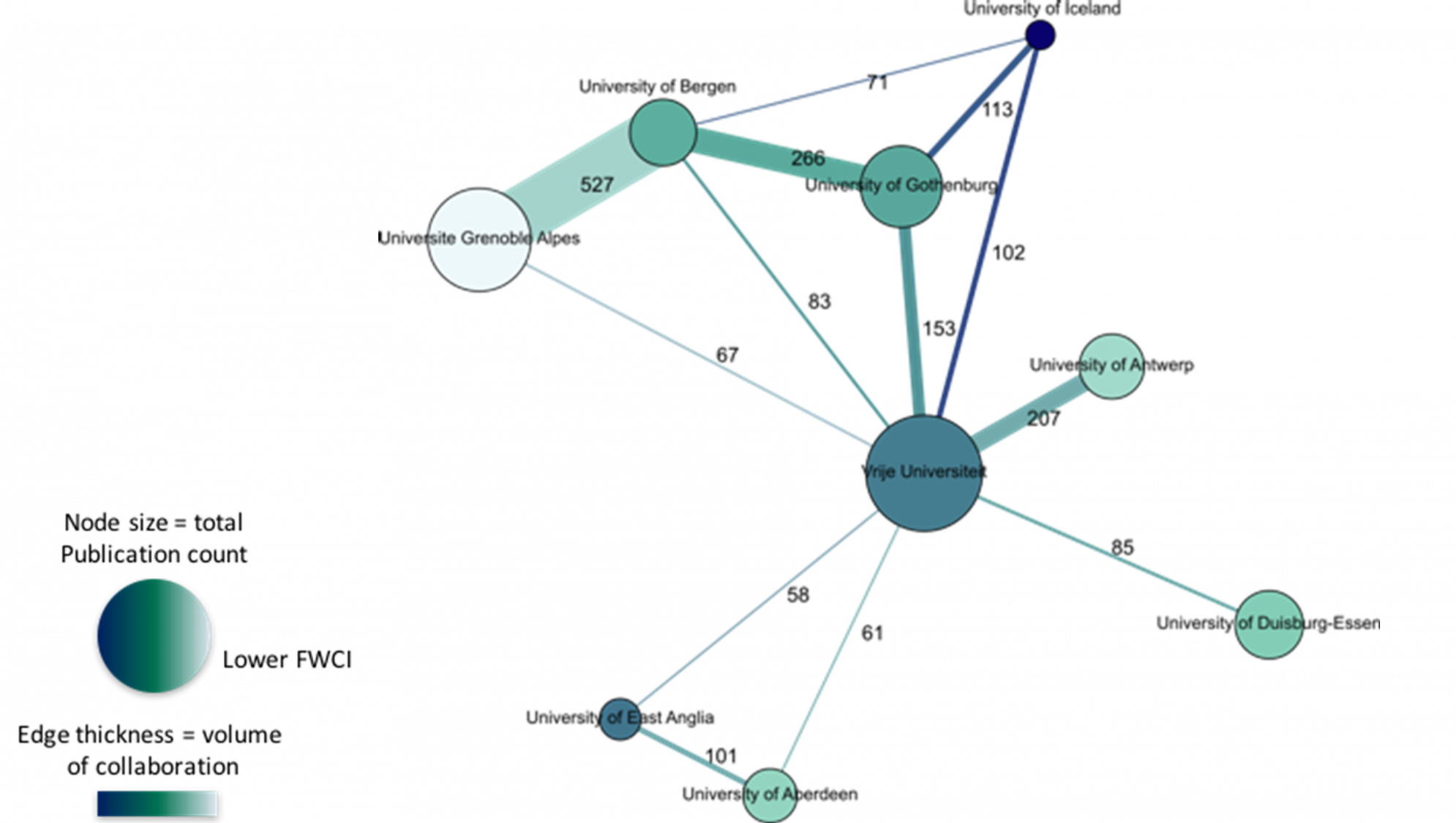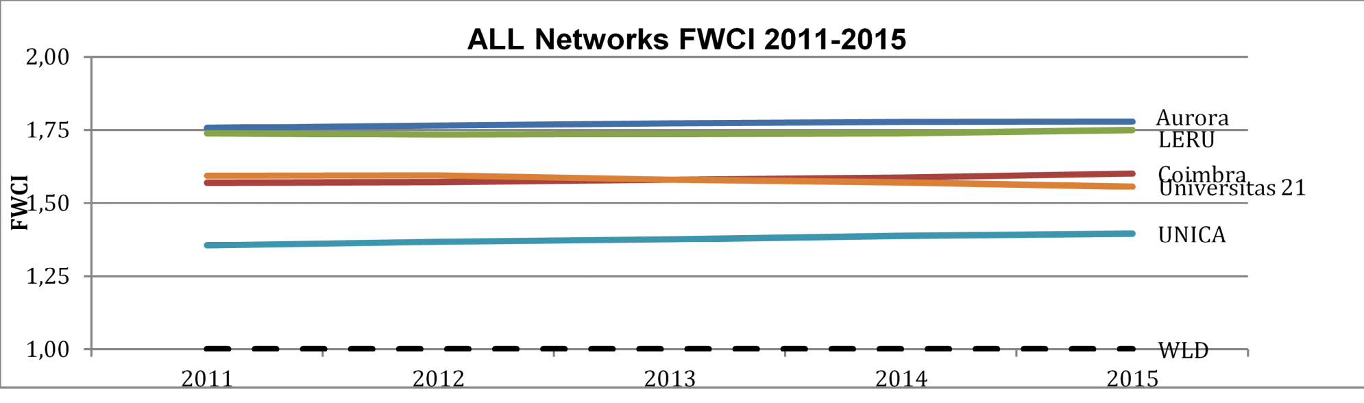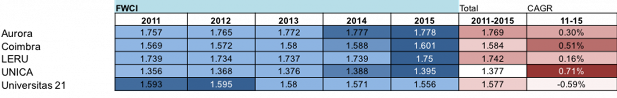 Samanburður á háskólanetum – eftir áhrifastuðli (FWCI)