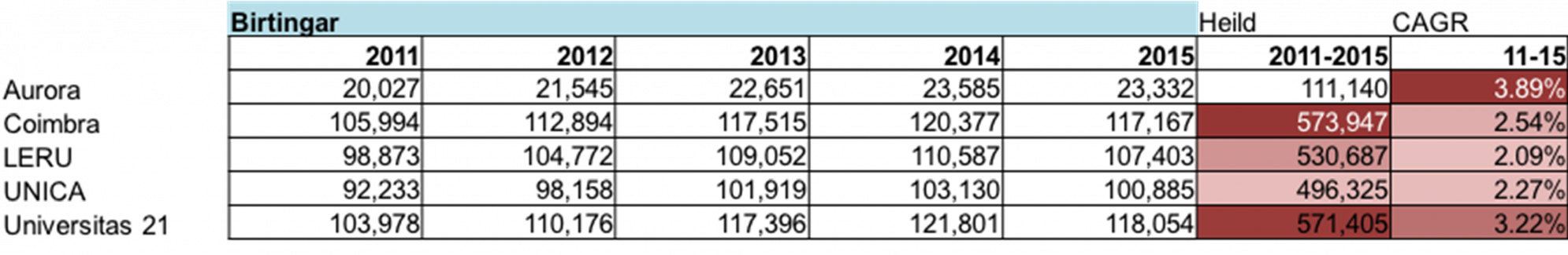 Samanburðarnet: Universitas 21, Coimbra, LERU, UNICA