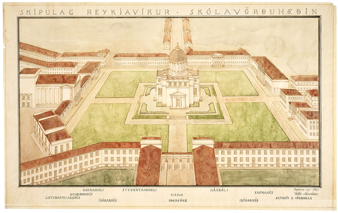 Teikning Guðjóns Samúelssonar af Háborg íslenskrar menningar frá árinu 1924.